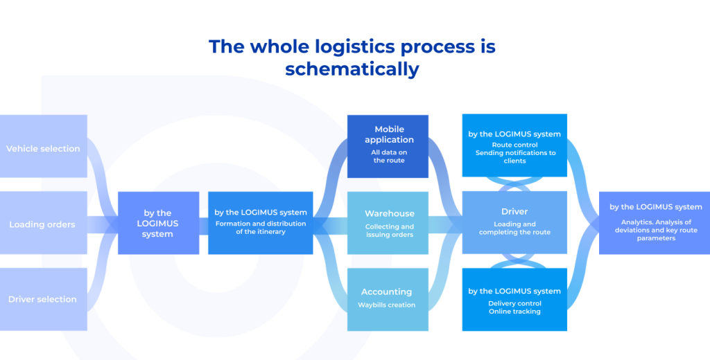 The main goal was to introduce tools for constructing optimal routes, as well as methods for monitoring their compliance, optimizing the cost of fuel and lubricants and vehicle repairs, and calculating the efficiency of routes and specific deliveries to customers.