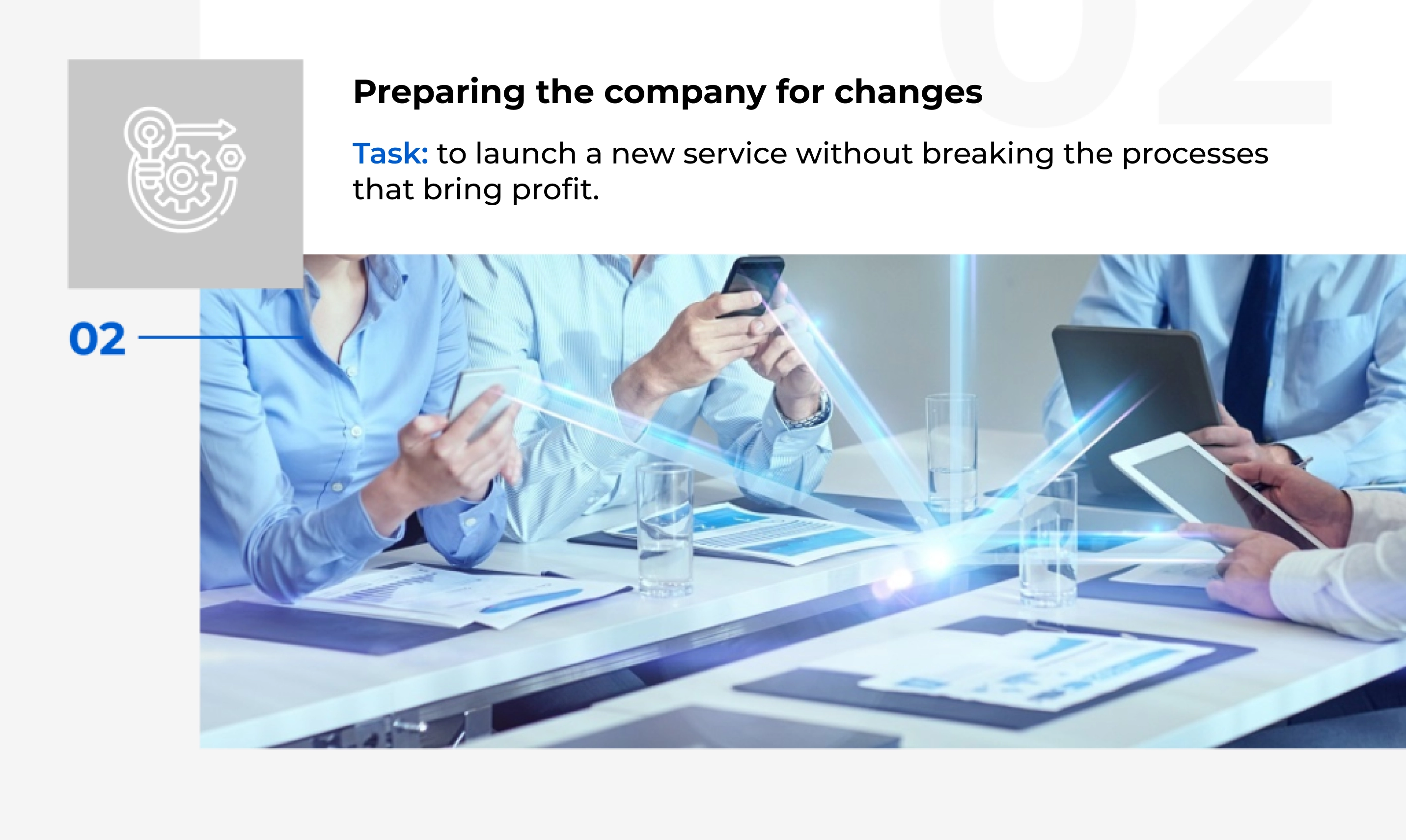 Help with implementation. If you make an airplane and provide customers with a thousand-page instruction manual, the vast majority will not fly, but will hide inside from the rain. To fly, at a minimum, you need a pilot instructor. So it is with our system. Implementation assistance is primarily stress-free training and support for employees. First we help them do their job and train them at the same time, and then we take the “flight” test. Hot consulting after launch. The client needs quick responses to all requests. Because the client’s delivery, as always, is “on fire”, and his image is at stake.