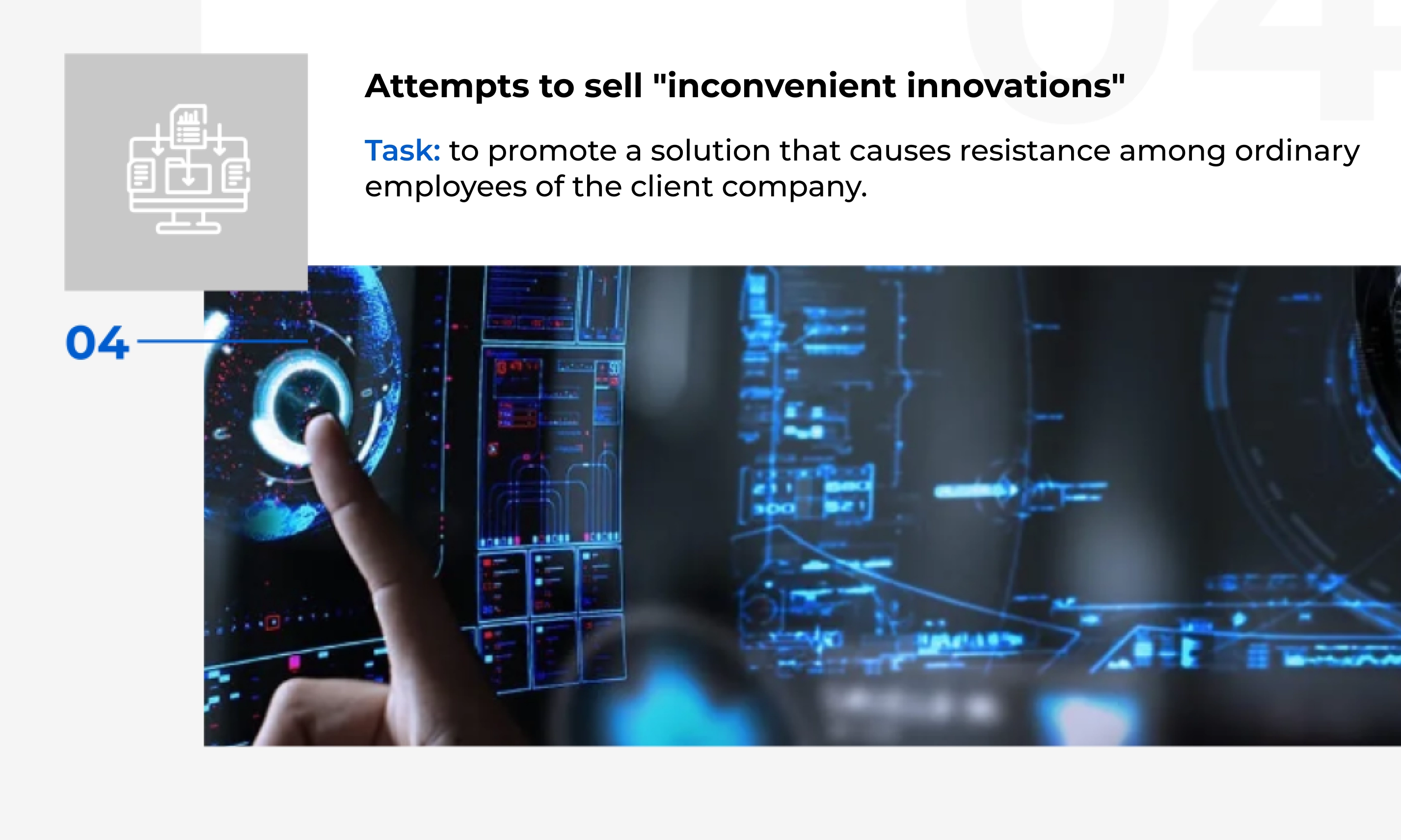 Solution: to jump over bureaucratic barriers to the level of top managers who are ready to speak the language of numbers.