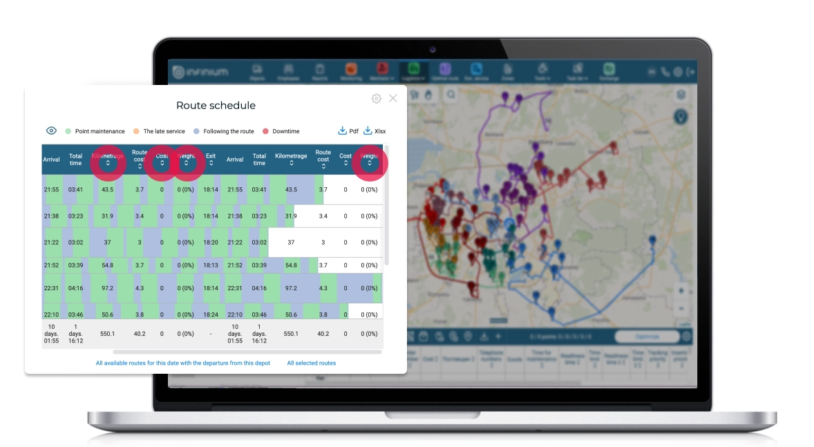 Sorting by fields in the route schedule has also been added