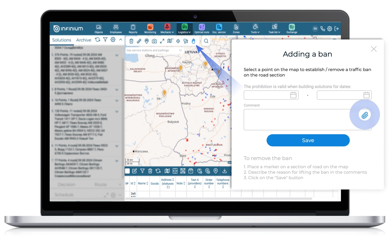 Often, System users note prohibitions, which are subsequently not confirmed. Sometimes controversial issues regarding placing/not placing prohibitions may arise. To speed up the verification of bans and their subsequent marking in the System in the “Adding a ban” form, the ability to attach a photo/screen confirming the existence of a given ban has been implemented.