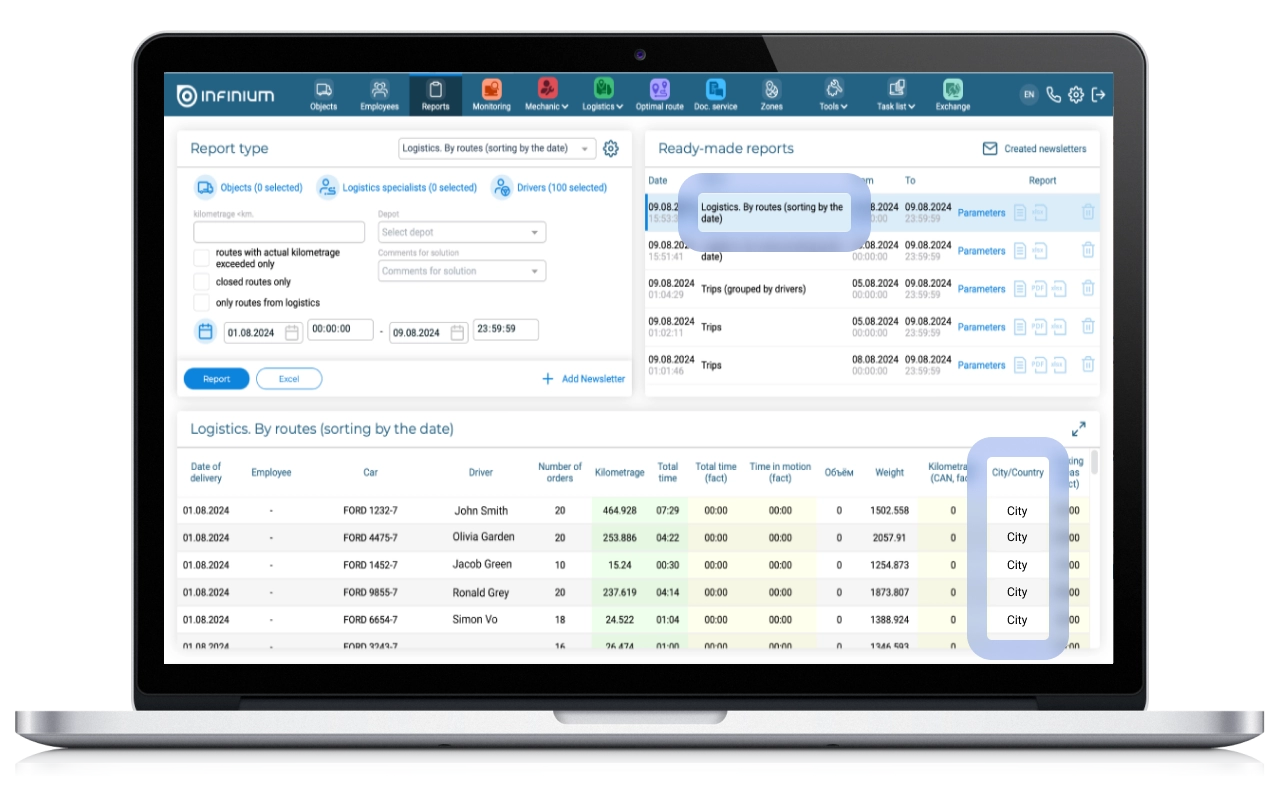 In the report “Logistics. By routes” added information about whether the route is urban or suburban
